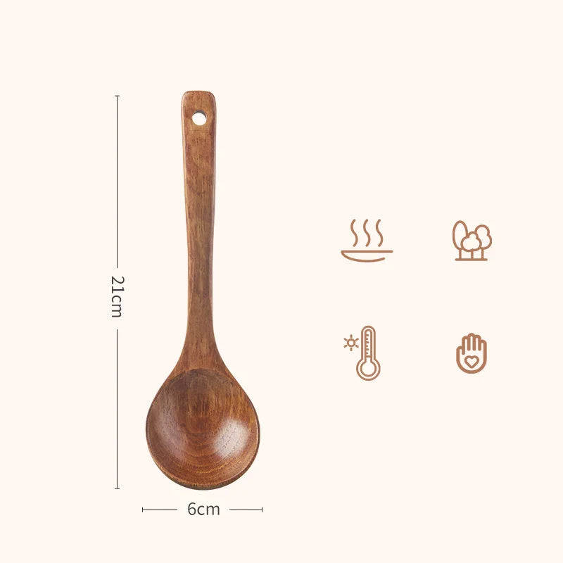 Afralia™ Natural Wood Spoon Set for Nonstick Cookware - Handmade Cooking Utensils