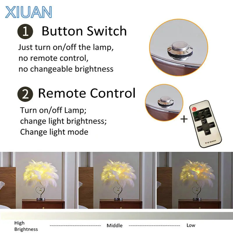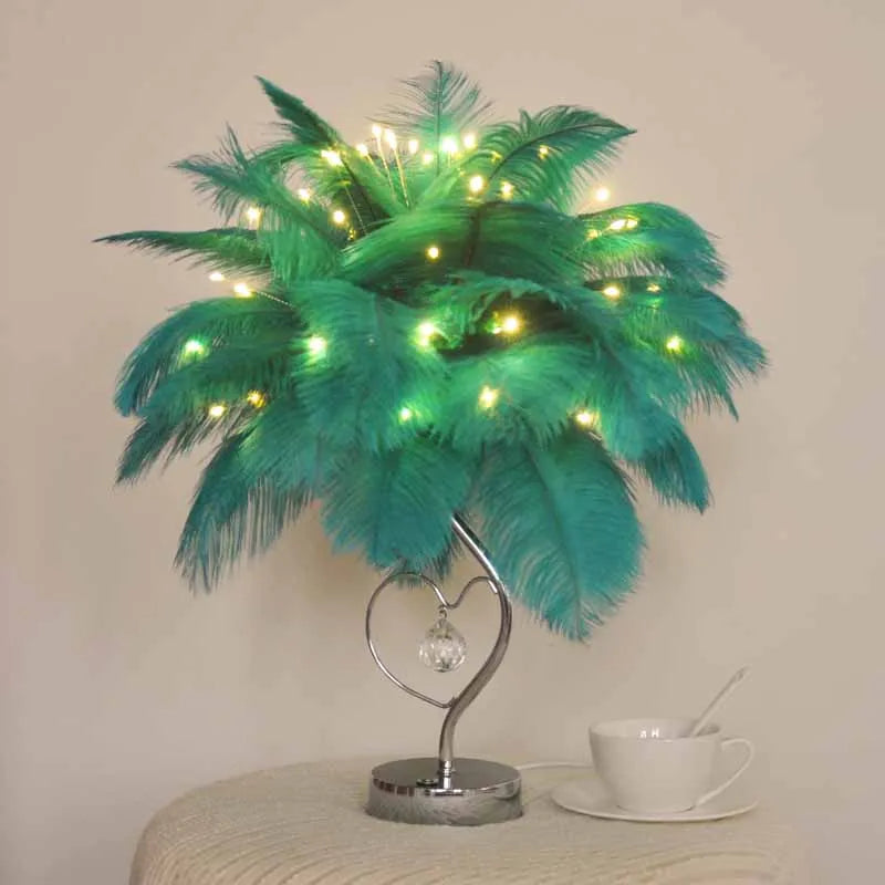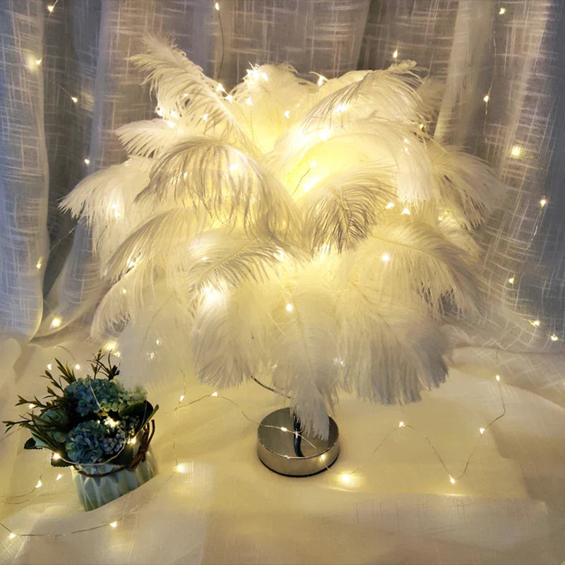 Illuminate your space with the Afralia™ Nature Ostrich Feather Table Light. This exquisite table lamp is a perfect addition to any room, bringing a touch of elegance and charm. The soft, luxurious ostrich feather design creates a cozy and inviting atmosphere, perfect for your bedside table or as a statement piece in your living room.
