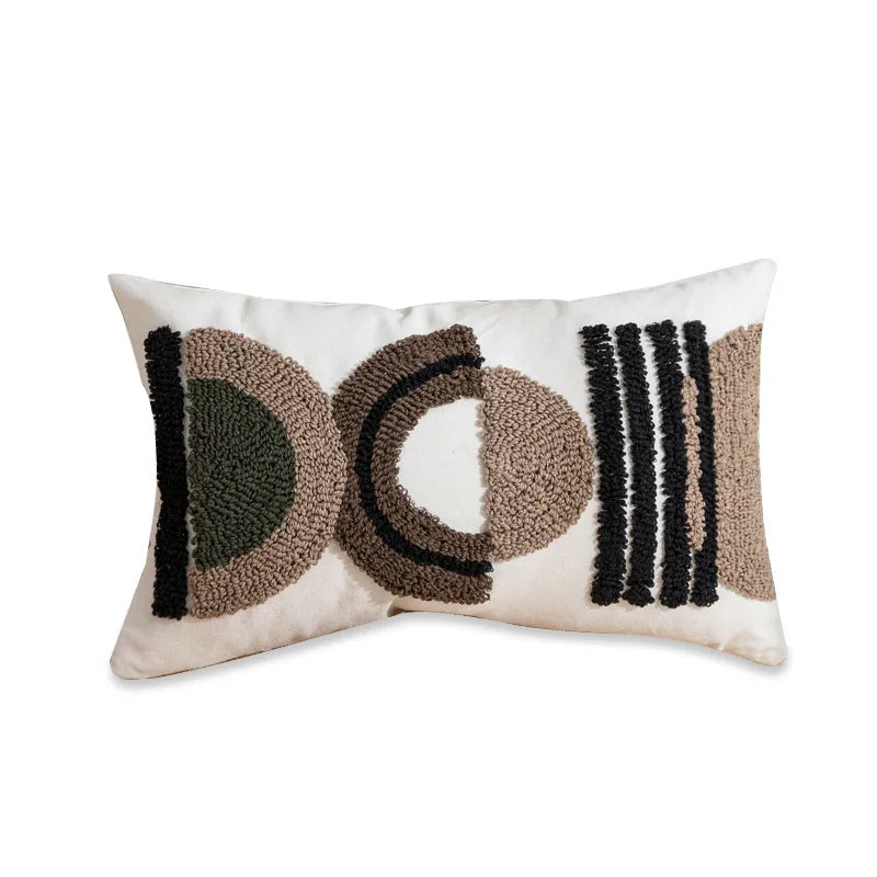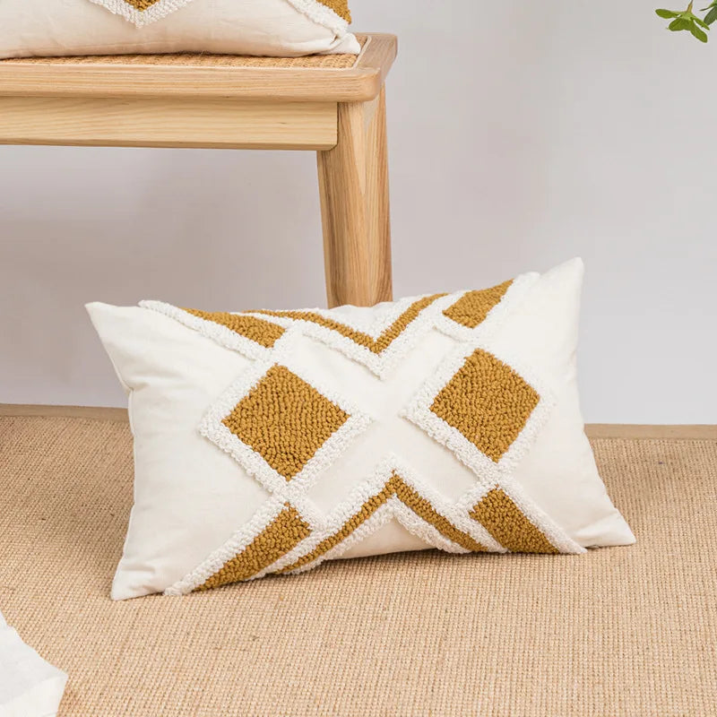 Afralia™ Nordic Blue Tufted Geometric Stripe Grid Crochet Tassels Pillow Cover
