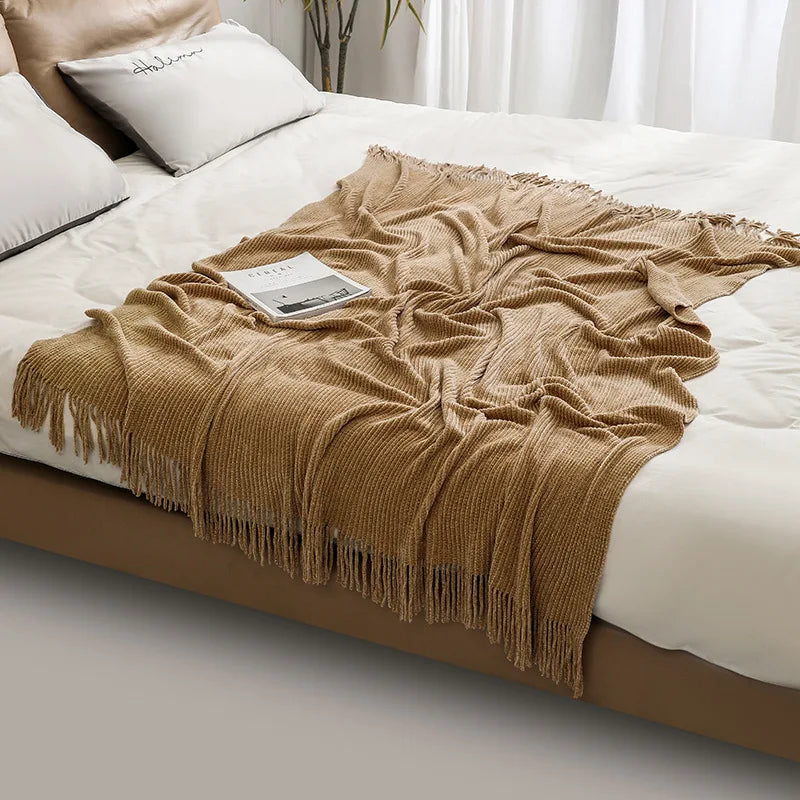 Afralia™ Nordic Chenille Knit Blanket - Soft Tassel Bed End Towel & Summer Cooling Sofa Cover