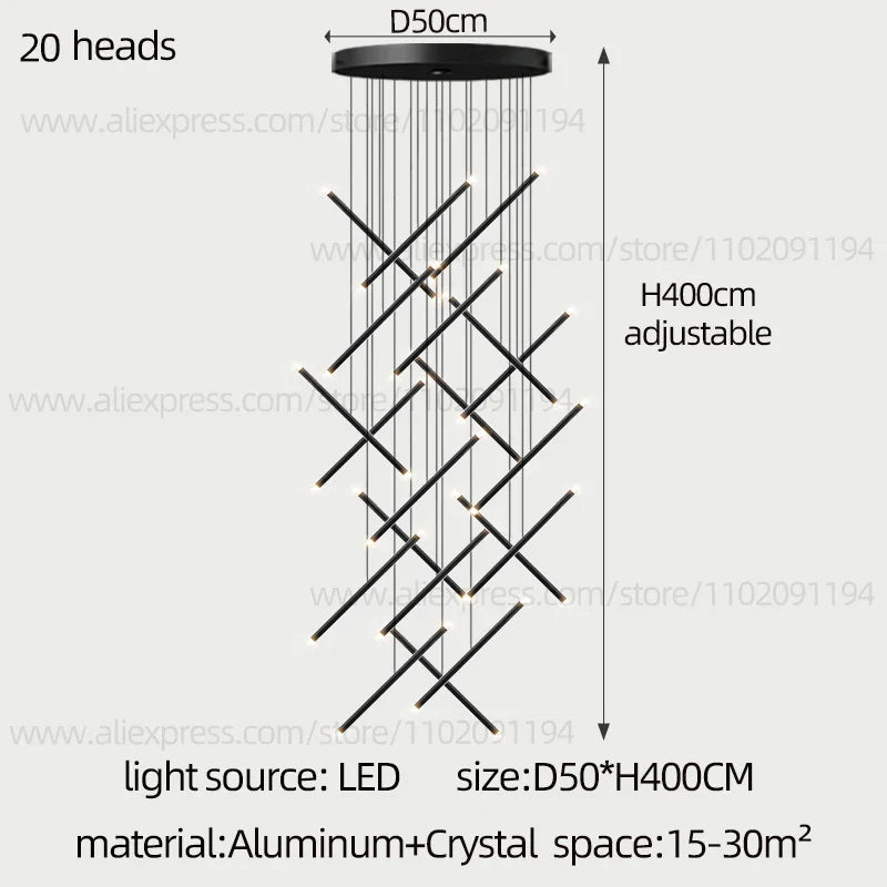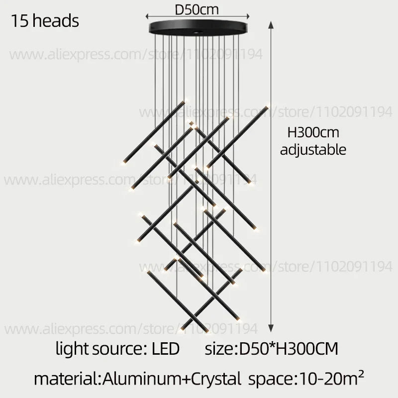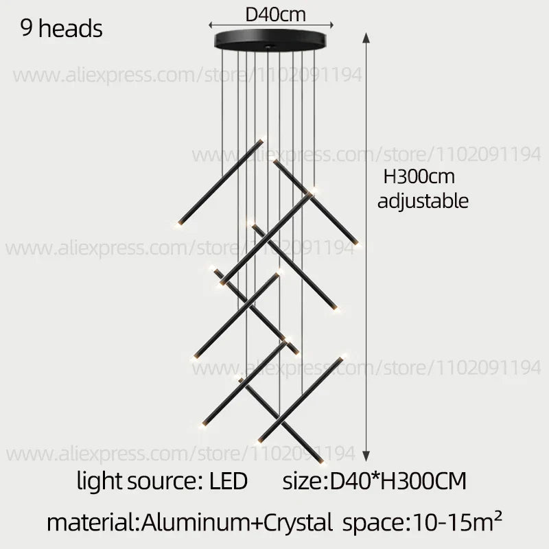 Crafted with precision and elegance, this exquisite lighting fixture set is a perfect blend of style and functionality. The chandelier comes with elongated black pendant lights that exude a modern charm, making it a focal point in any room. The height of the pendant lights is adjustable, allowing you to customize the lighting to suit your space perfectly.