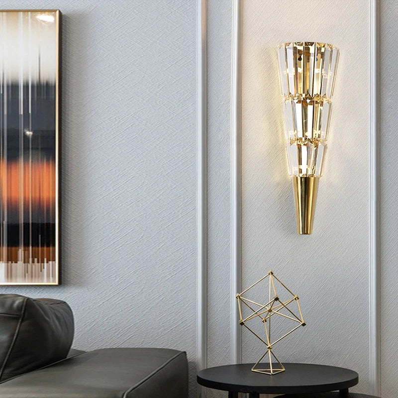 Introducing the Afralia™ Nordic Golden Crystal LED Wall Lamp, a stunning addition to luxury living spaces. This modern-style wall lamp features exquisite crystal shades that exude elegance and sophistication.