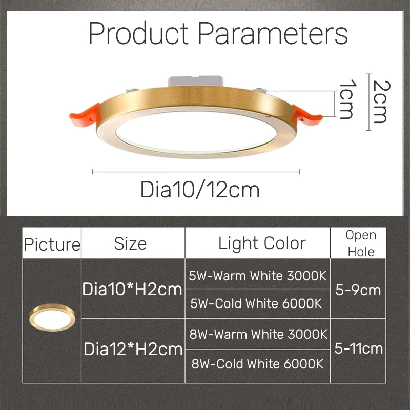 Afralia™ Nordic LED Copper Ceiling Downlight 5W/8W Spot Lighting for Kitchen Bedroom Aisle