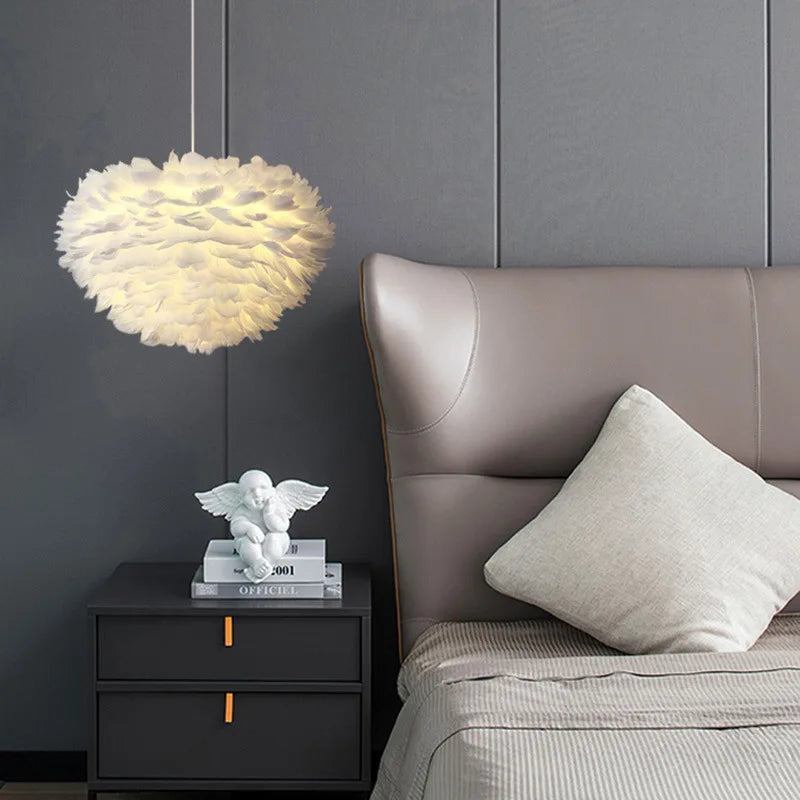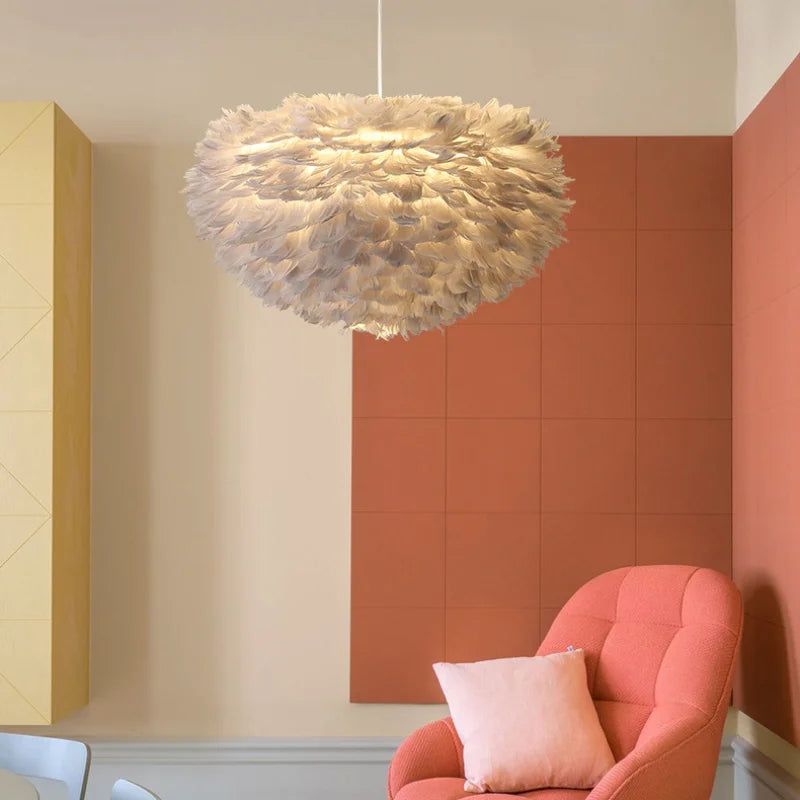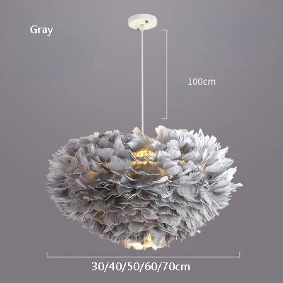 Crafted with high-quality materials and attention to detail, this pendant light features a lampshade available in elegant white or sophisticated gray, adding a subtle yet luxurious touch to your decor. The feather accents bring a sense of softness and warmth to the room, enhancing the overall charm of your space.