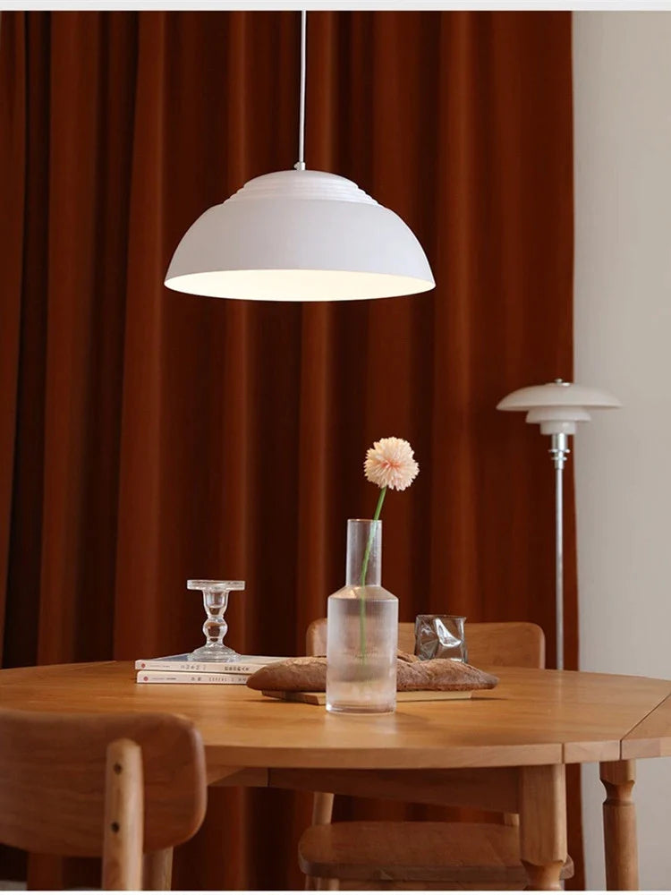Crafted from high-quality aluminum material, this pendant light is both durable and aesthetically pleasing. The lampshade comes in a crisp white color, adding a touch of elegance to your decor. The painted technics and iron finish further enhance its visual appeal.