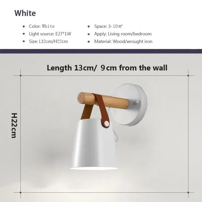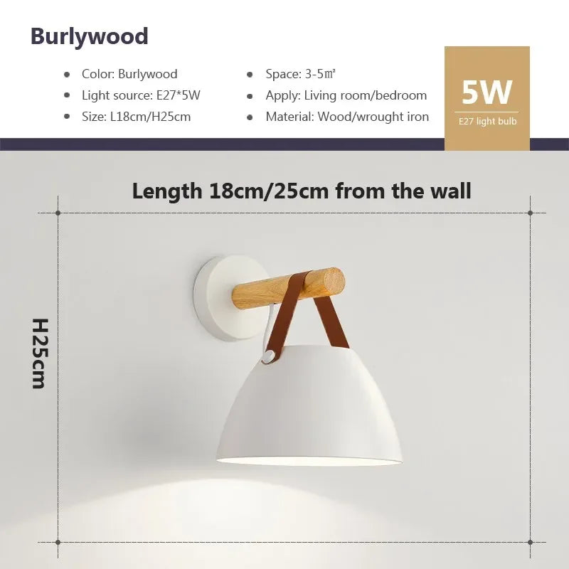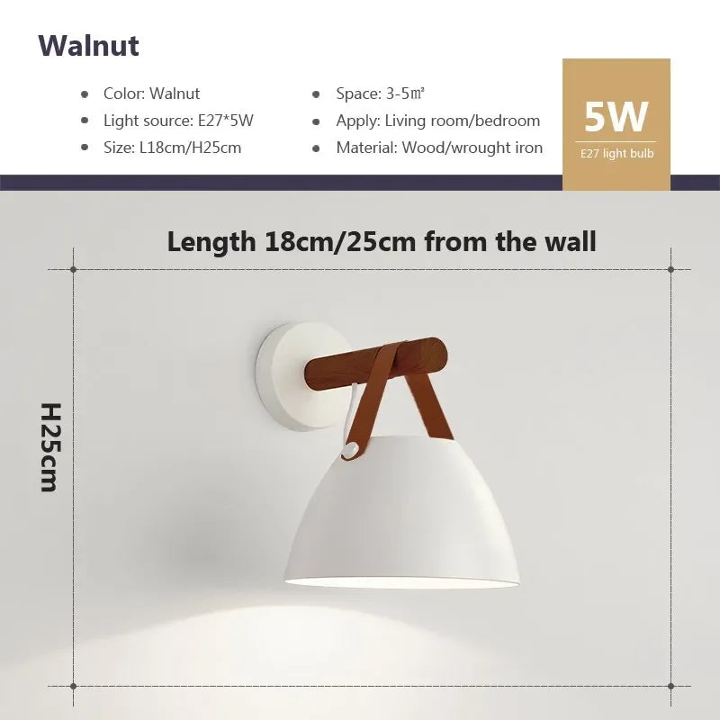 Afralia™ Nordic Wood Leather Belt Wall Lamp for Bedroom Study Living Room