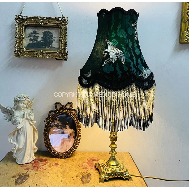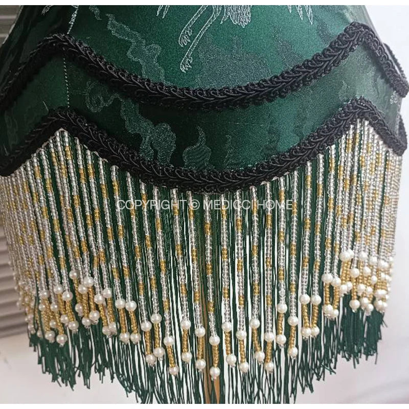 Afralia™ Nostalgia Crane Jacquard Lampshade - Chinese-Western Decor with Tassels