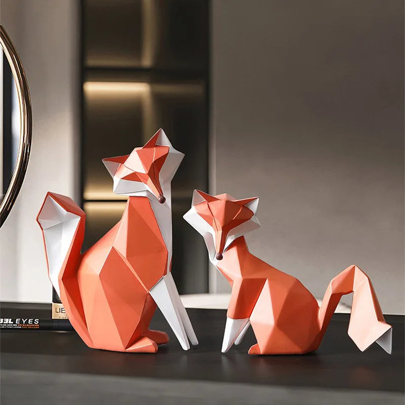 Afralia™ Orange Fox Geometric Statue | Abstract Animal Figurine Home Office Decor