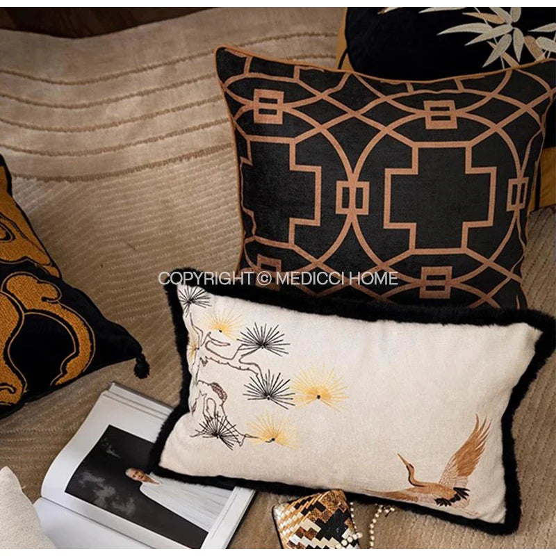 Afralia™ Oriental Crane Birds Decorative Cylindrical Pillow Cover for Bed Sofa