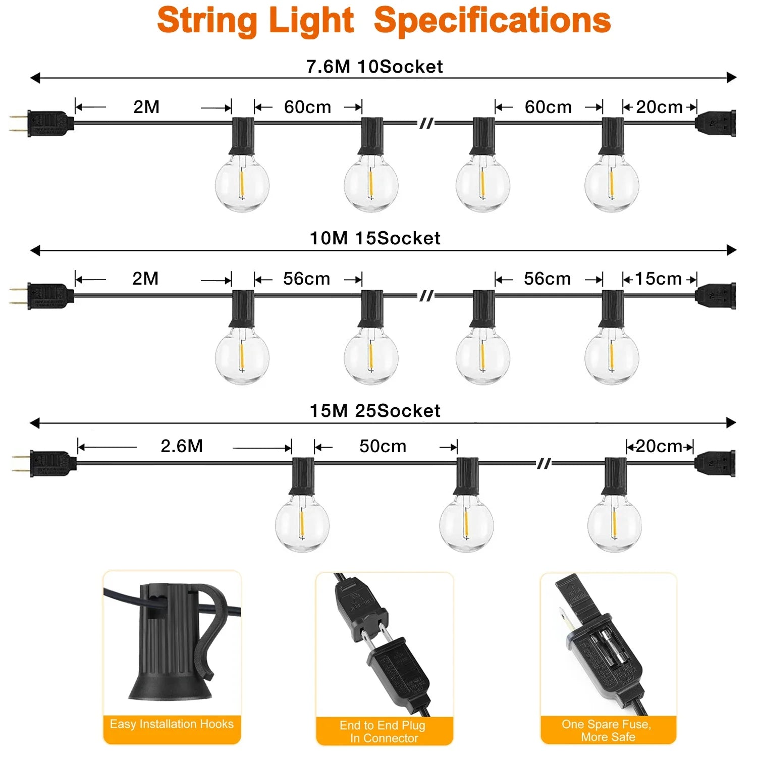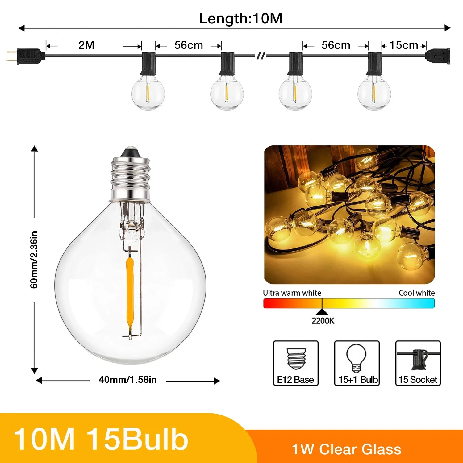 Afralia™ Outdoor G40 Globe LED String Lights IP44 Weatherproof Connectable