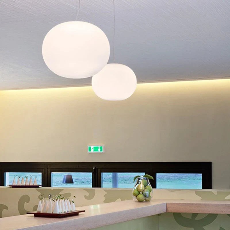 Afralia™ Oval White Glass Pendant Lights for Modern Living Room, LED Hanging Lamp