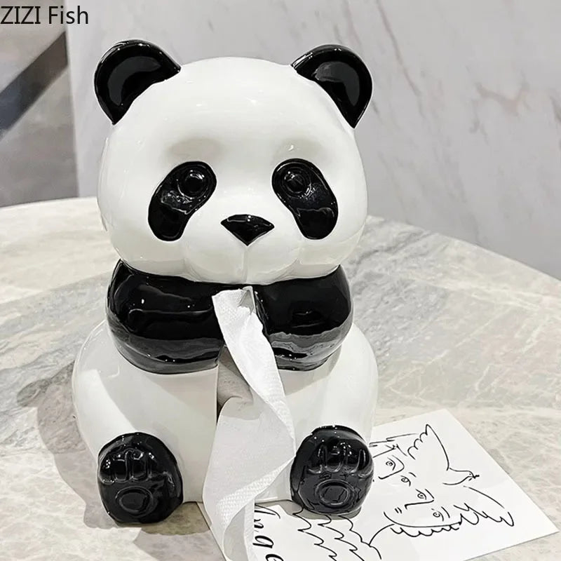 Afralia™ Panda Ceramic Tissue Box: Modern Home Decor & Napkin Holder for Coffee Table