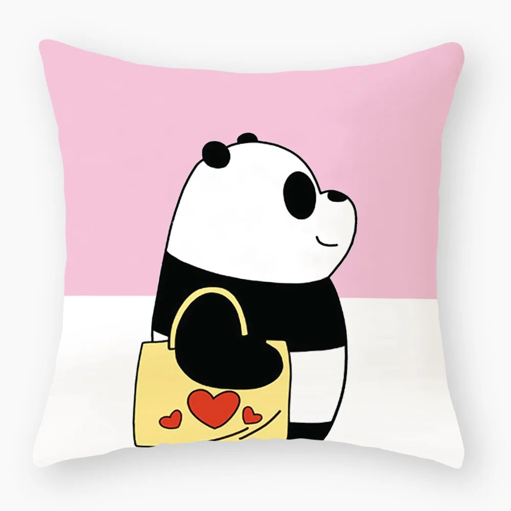 Afralia™ Panda Print Cushion Cover - Soft Short Plush 45x45cm