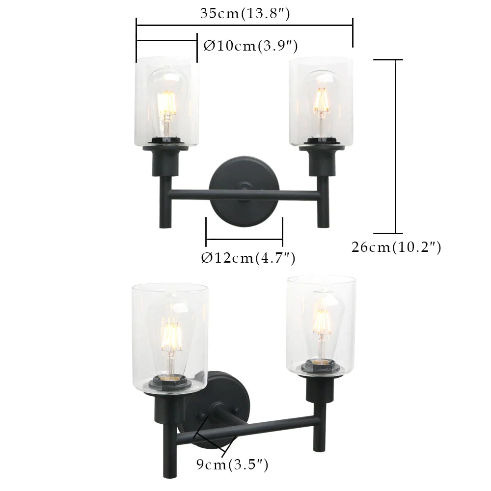 Afralia™ Permo 2 Light Industrial Wall Sconce with Clear Glass Shade