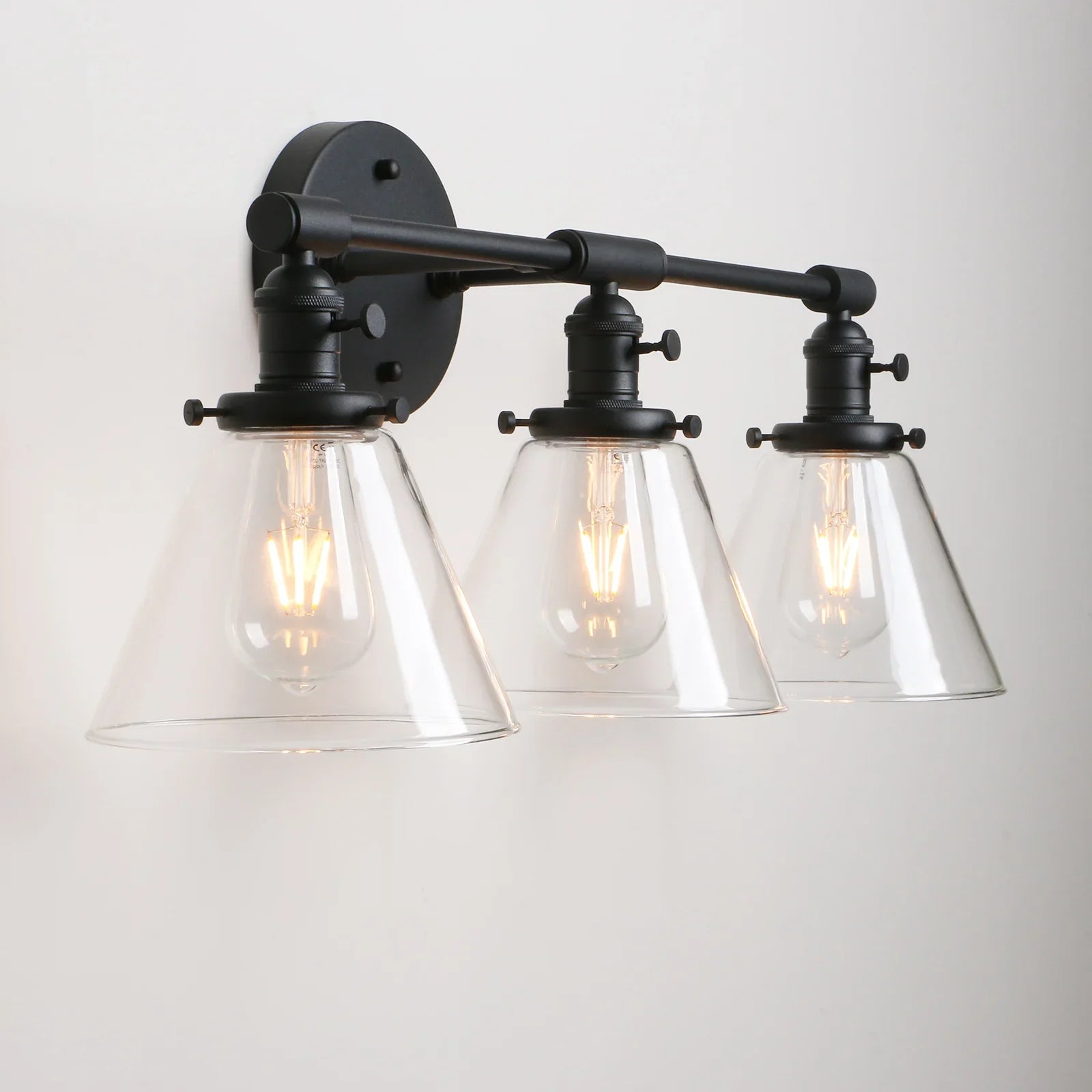 The Afralia™ Permo 3-Light Cone Glass Sconce is perfect for a variety of rooms in your home, including the kitchen, dining room, bedroom, foyer, study, and of course, the bathroom. Its sleek design and versatile application make it a must-have for any modern home.