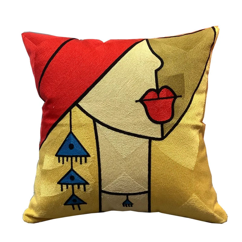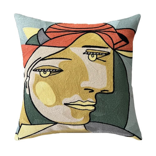 Afralia™ Picasso Design Cushion Covers: Stylish Embroidered Home Decor, Linen & Cotton Blend