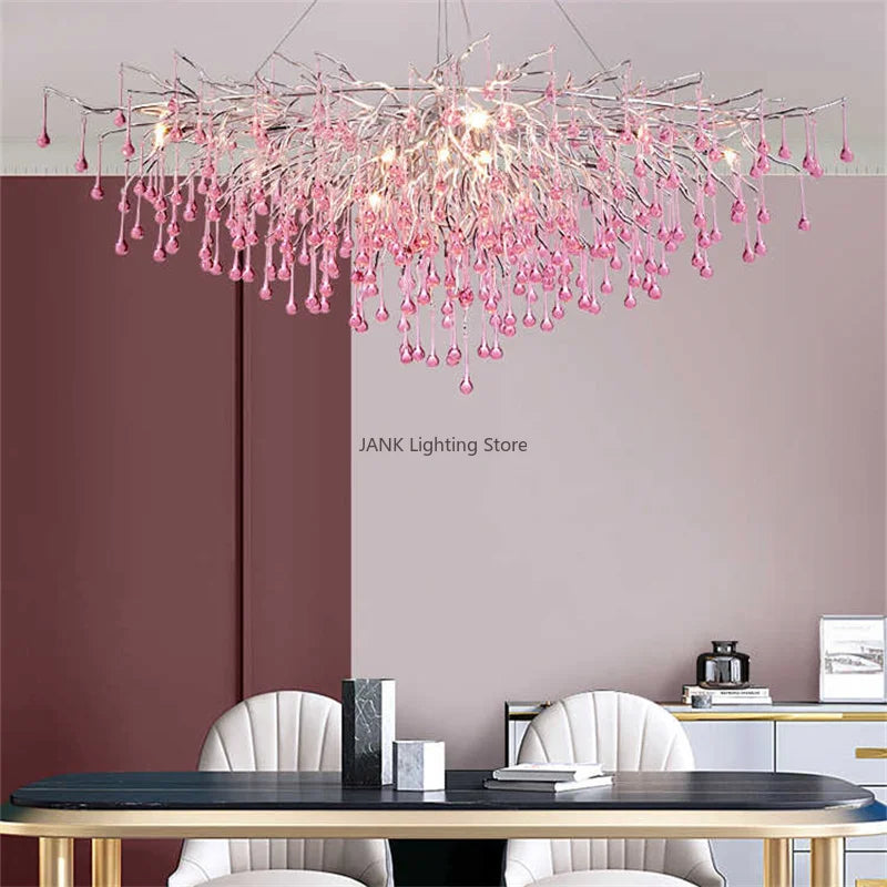 Afralia™ Pink Crystal Chandelier: Luxury Children's Room Decor Water Drop Ceiling Fixture