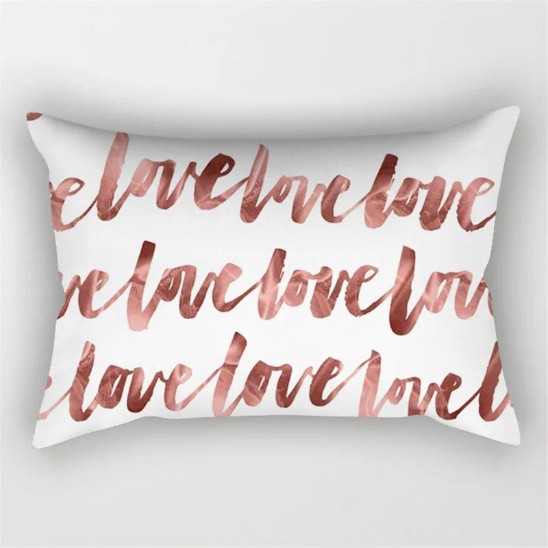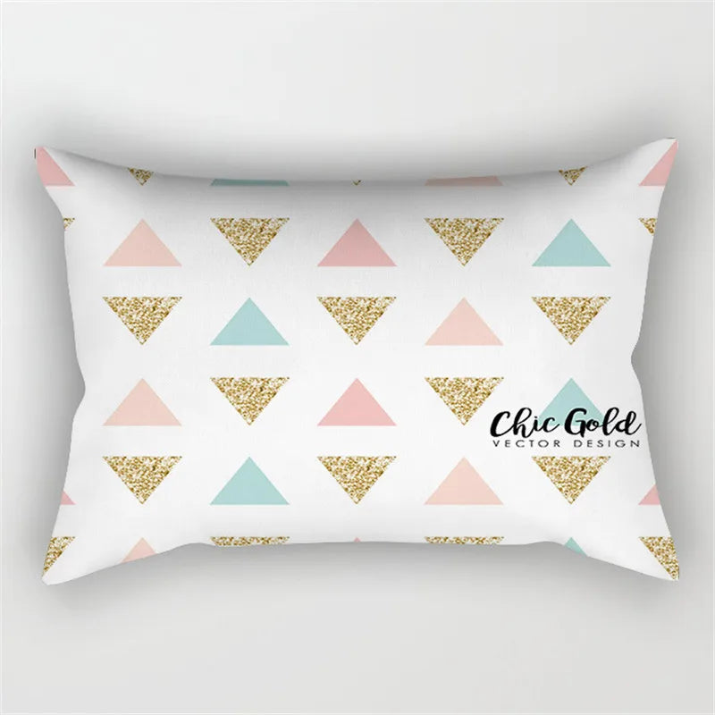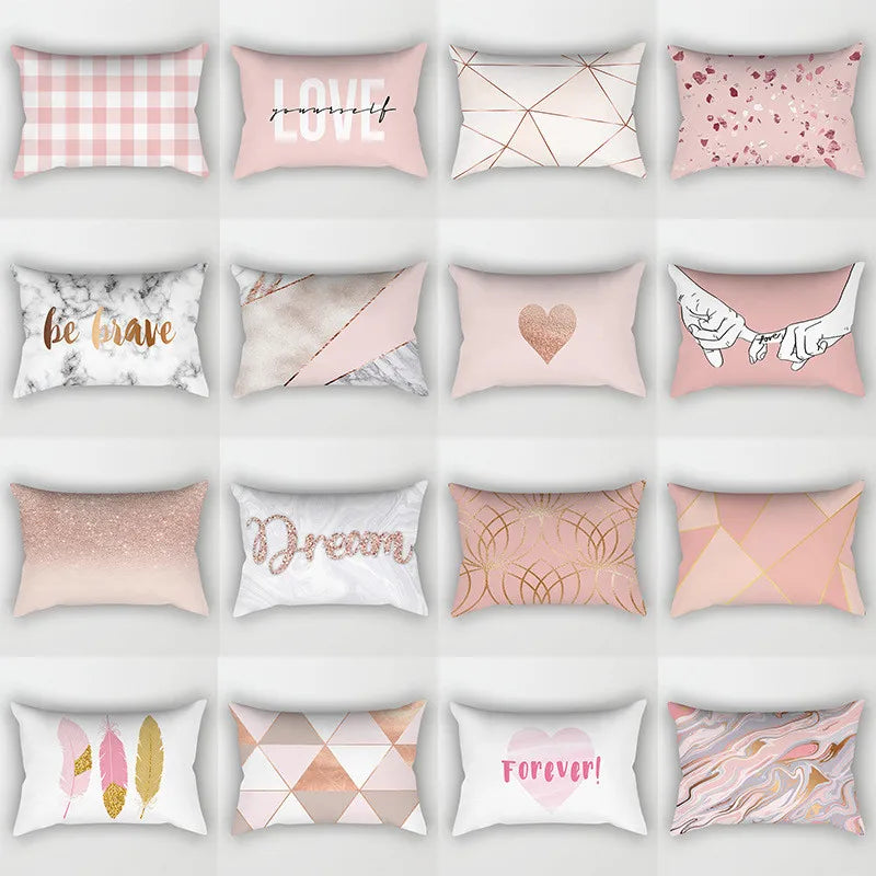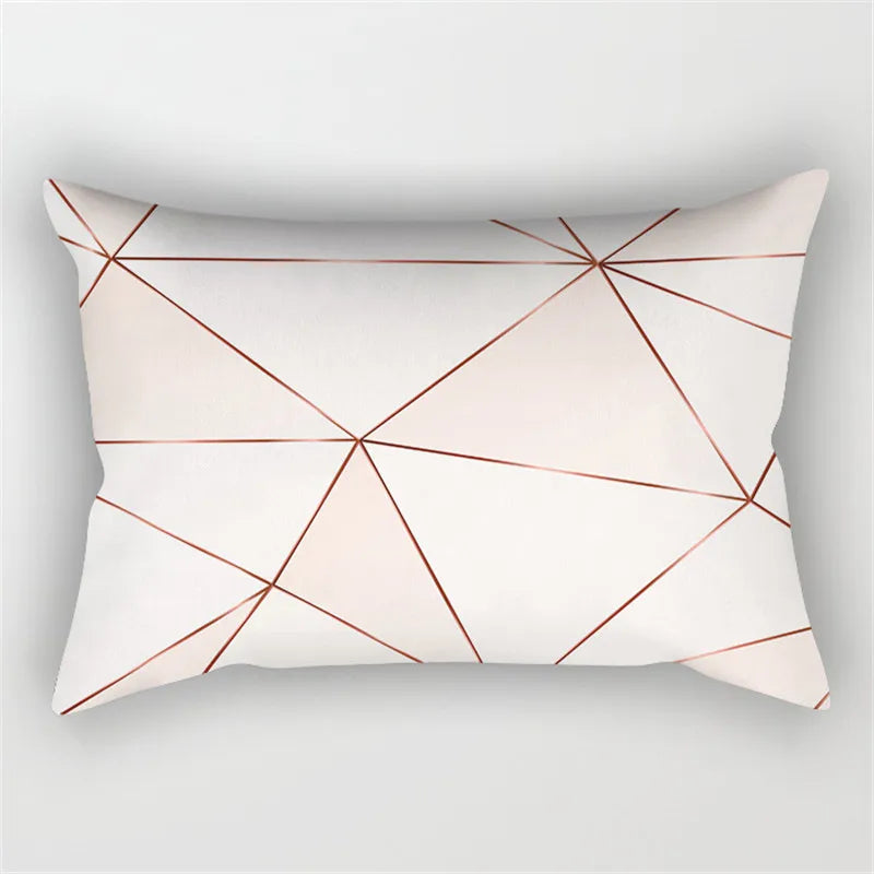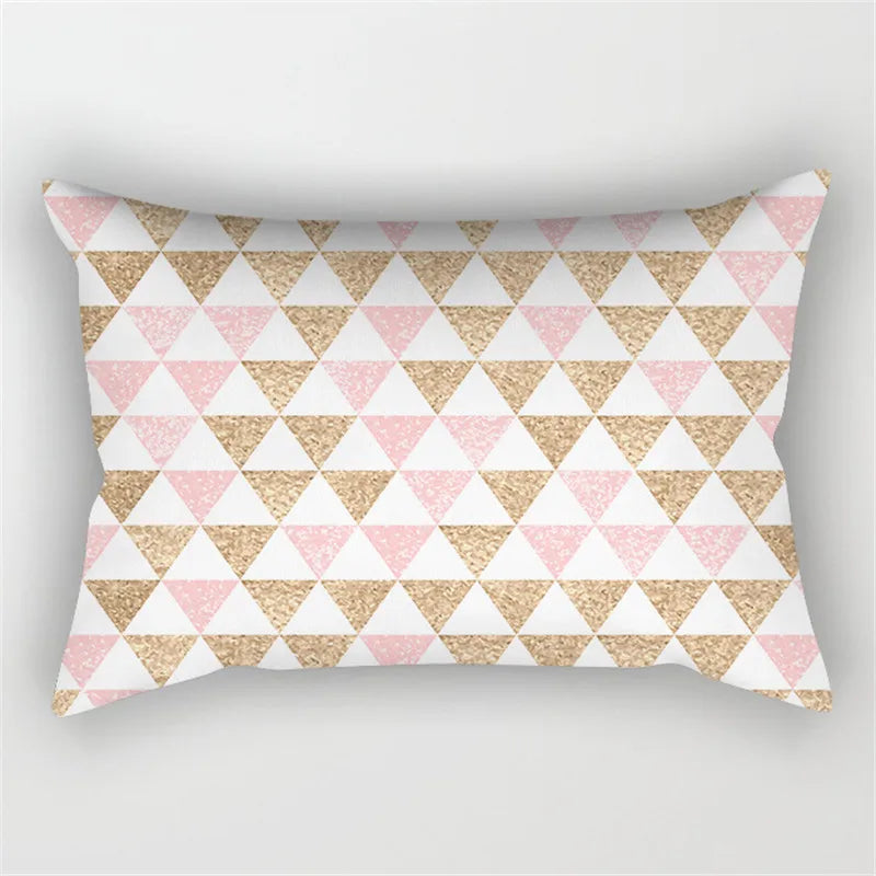 Afralia™ Pink Geometric Gold Line Letter Cushion Cover