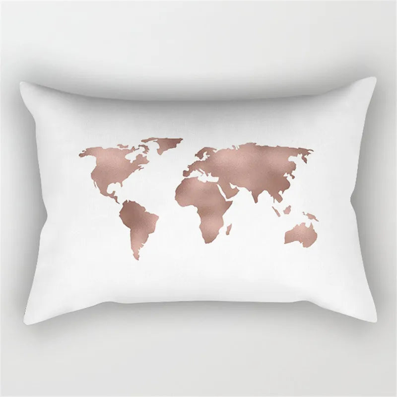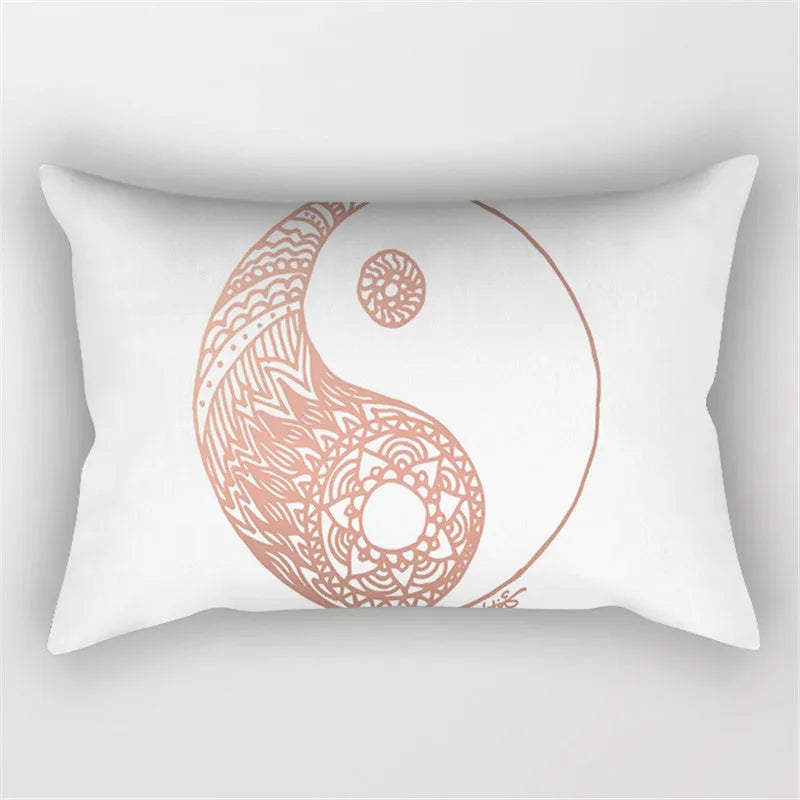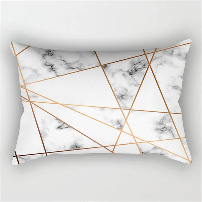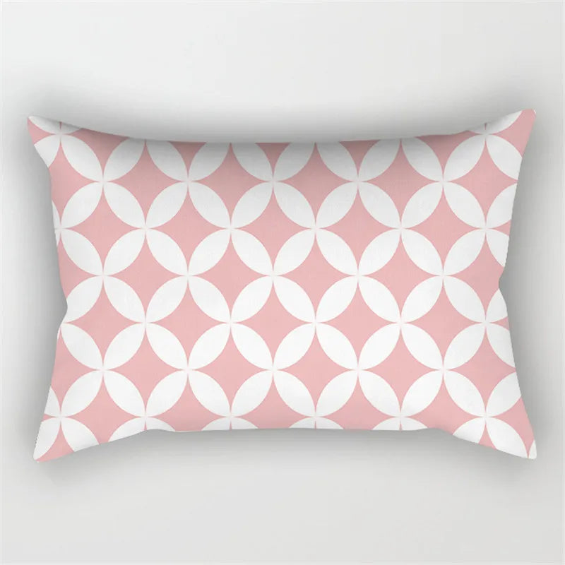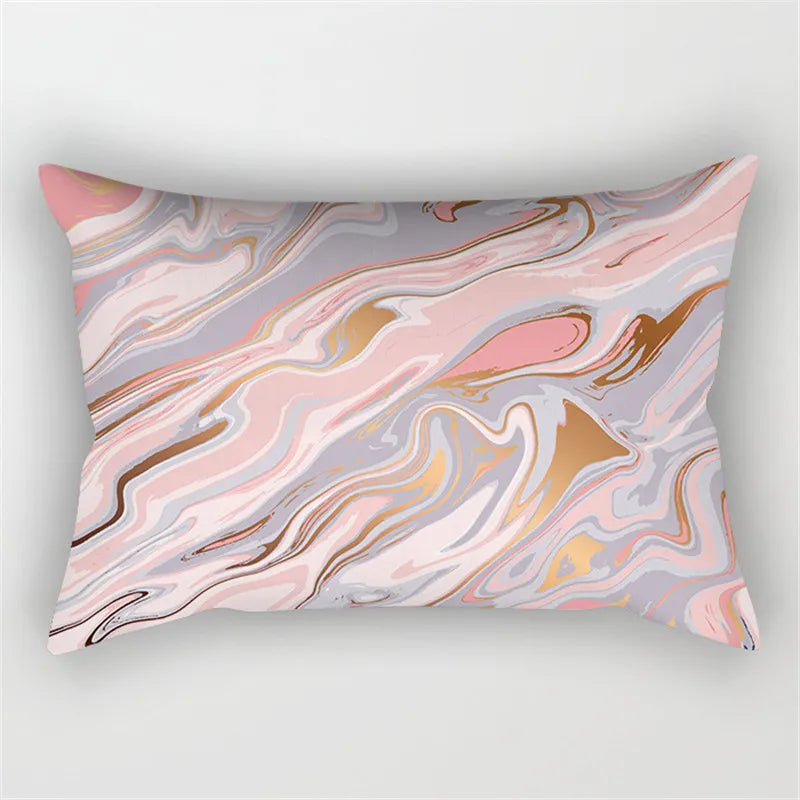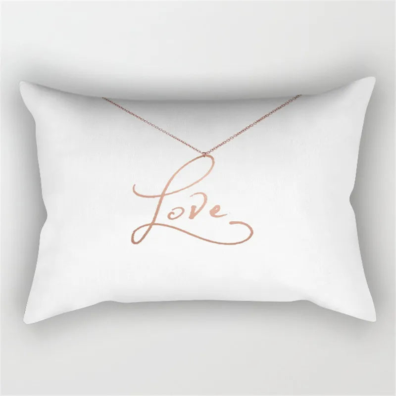 Afralia™ Pink Geometric Gold Line Letter Cushion Cover