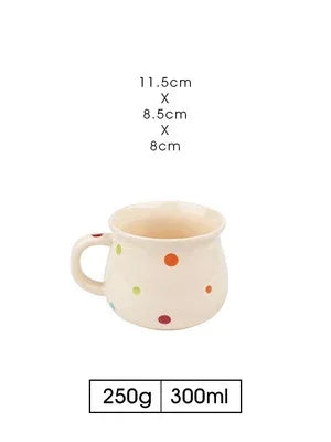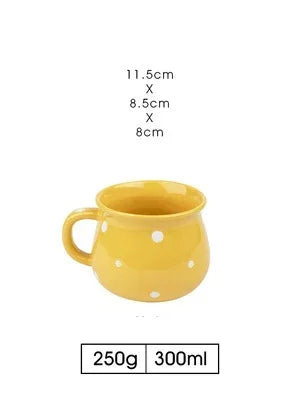 Afralia™ Polka Dot Ceramic Breakfast Mug Set with Lid and Spoon