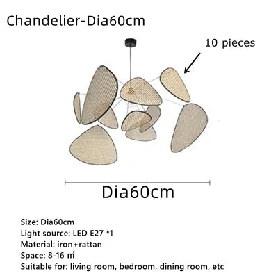 Brighten up your living space with our unique rattan wicker chandelier, a versatile piece that will effortlessly enhance the aesthetic appeal of any room. Add a touch of style and sophistication to your home with this exquisite lighting fixture.