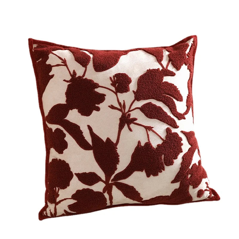 Afralia™ Red Embroidered Cushion Cover - Luxury Fabric Art Sofa Pillowcase for Home Décor