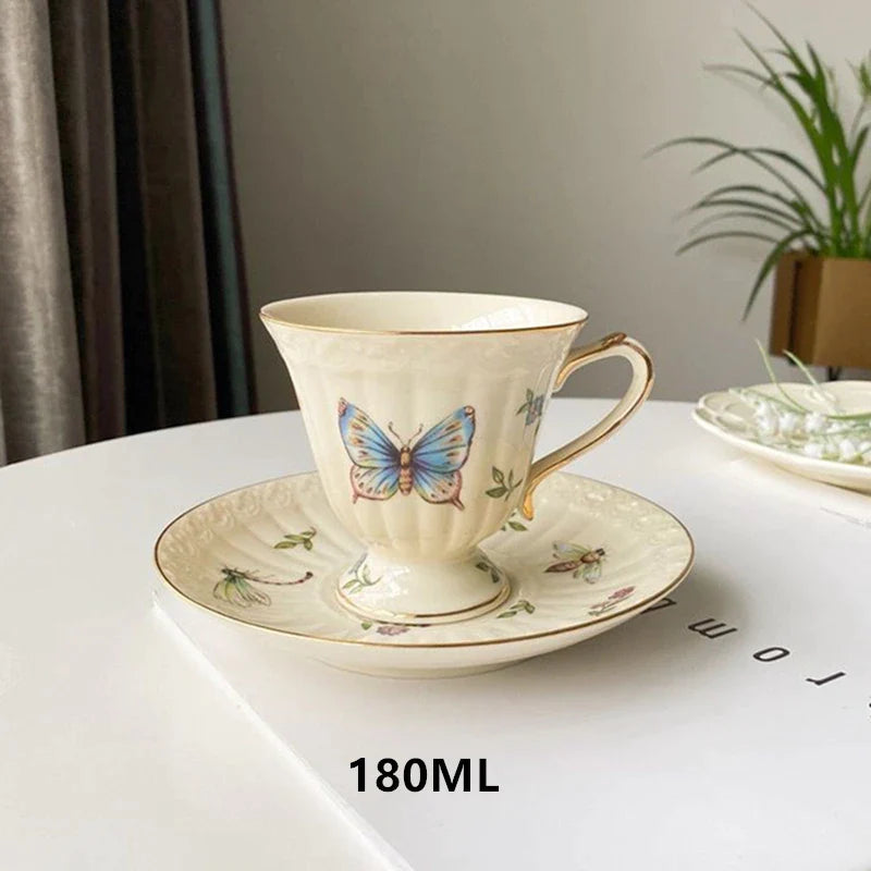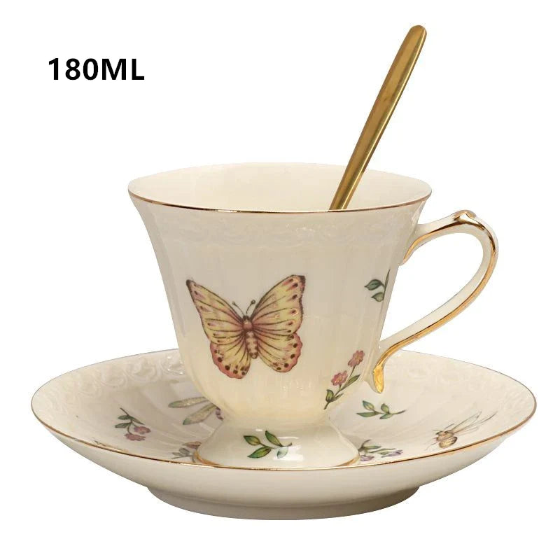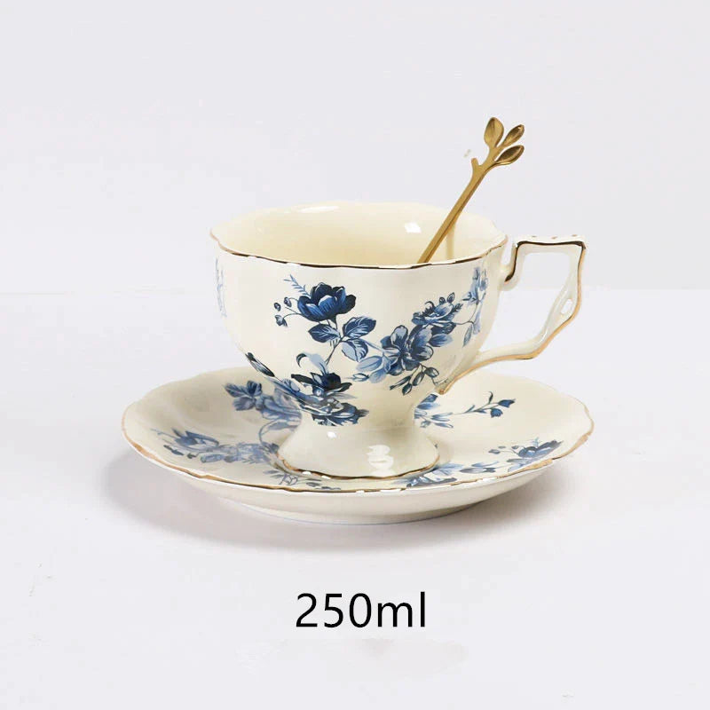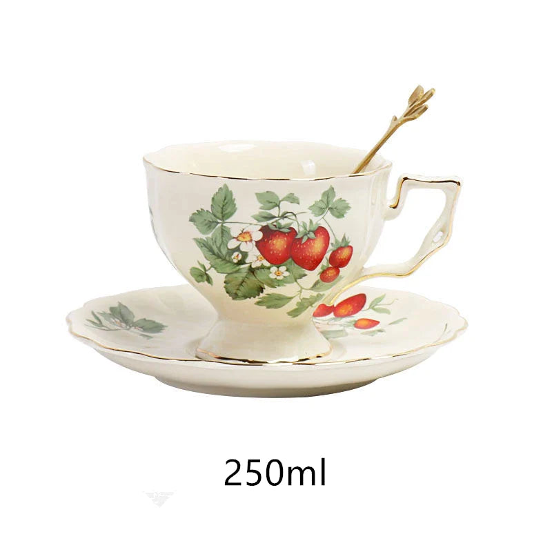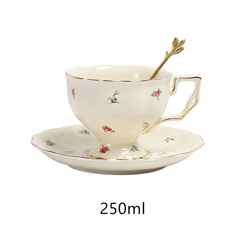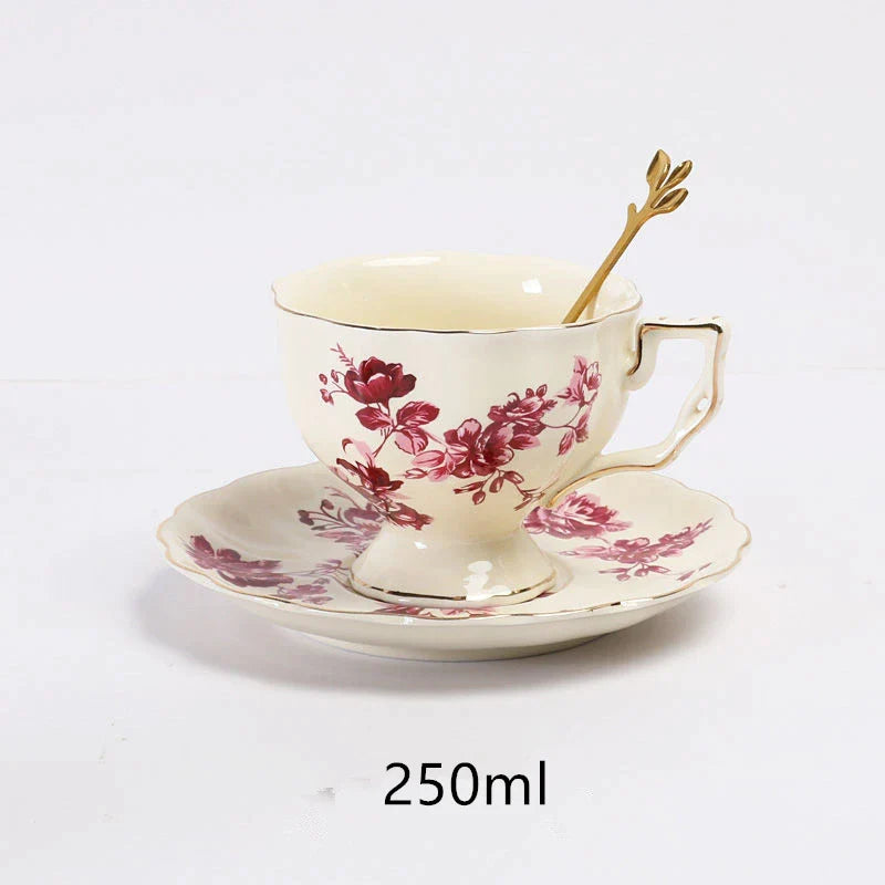 Afralia™ Red Rose Ceramic Tea Cup Set with Spoon, European Style Coffee Mug for Home Parties