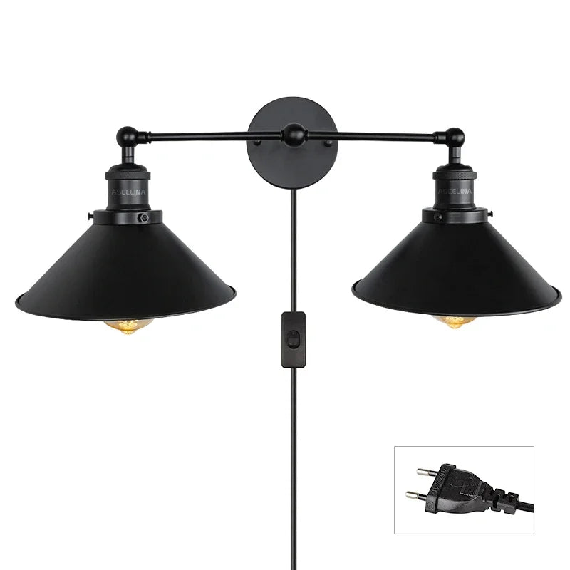 Crafted with high-quality metal and featuring a classic industrial design, this wall-mounted lamp exudes character and sophistication. The double-head configuration offers versatility and ample illumination, making it suitable for various settings such as restaurants, bars, stores, bedrooms, foyers, studies, and bathrooms.