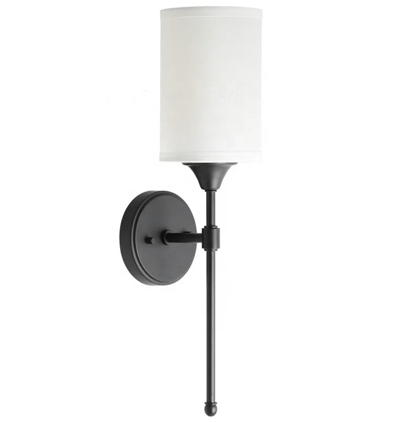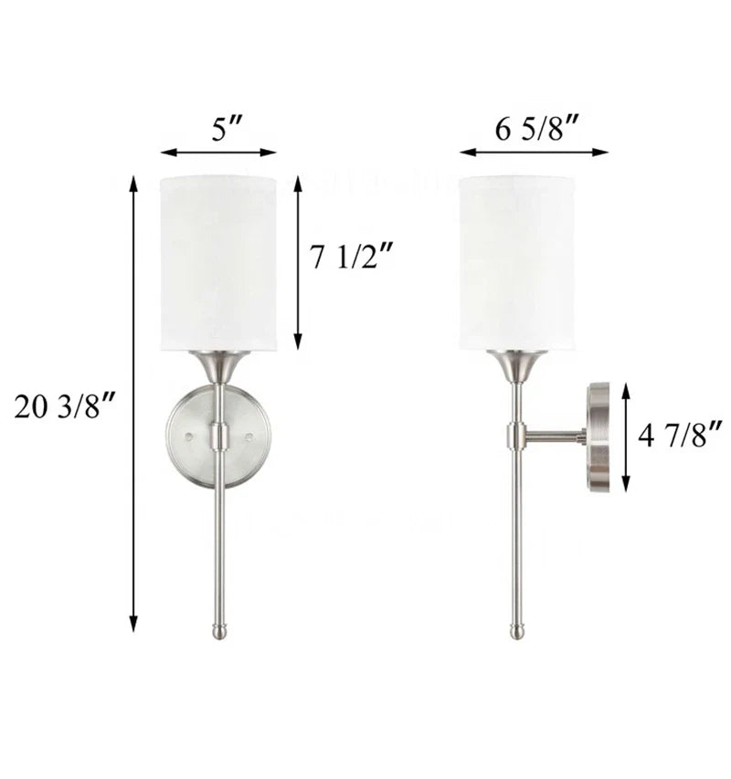 With LED bulbs as the light source, this wall lamp provides sufficient lighting for a 1-3 square meter area. The fabric shade adds a touch of elegance, while the iron body ensures sturdiness. The E27 base type allows for easy installation, and the AC power source guarantees reliable performance.