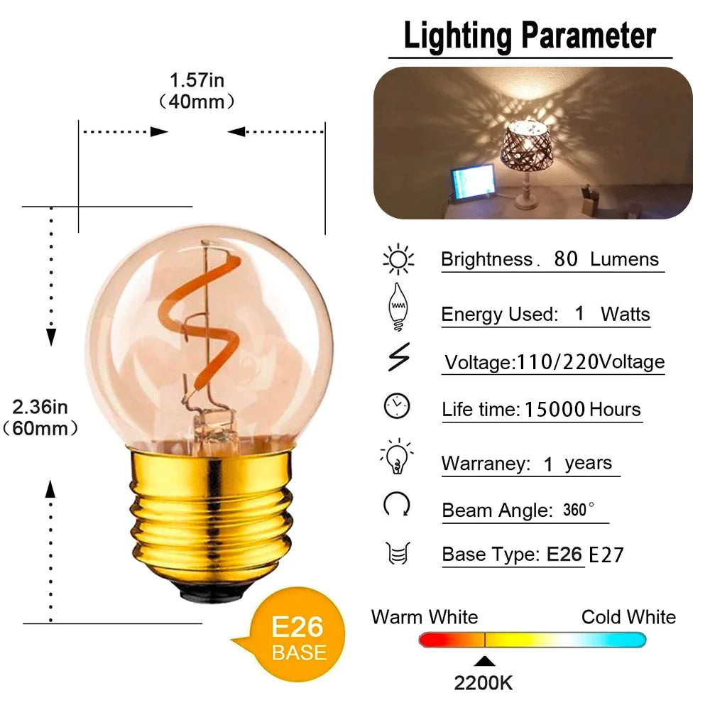 Afralia™ Retro Spiral Globe LED Bulbs 1W G40 E27 Amber Glass 2200K Decorative Lighting