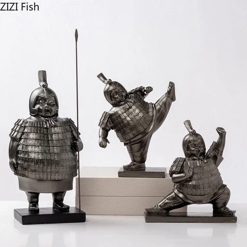 Afralia™ Retro Terracotta Fat Soldier Sculpture Abstract Figure Statue for Home Decor