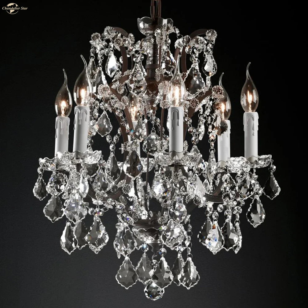 Afralia™ Rococo Iron & Crystal LED Chandelier - Rustic Hanging Pendant Light
