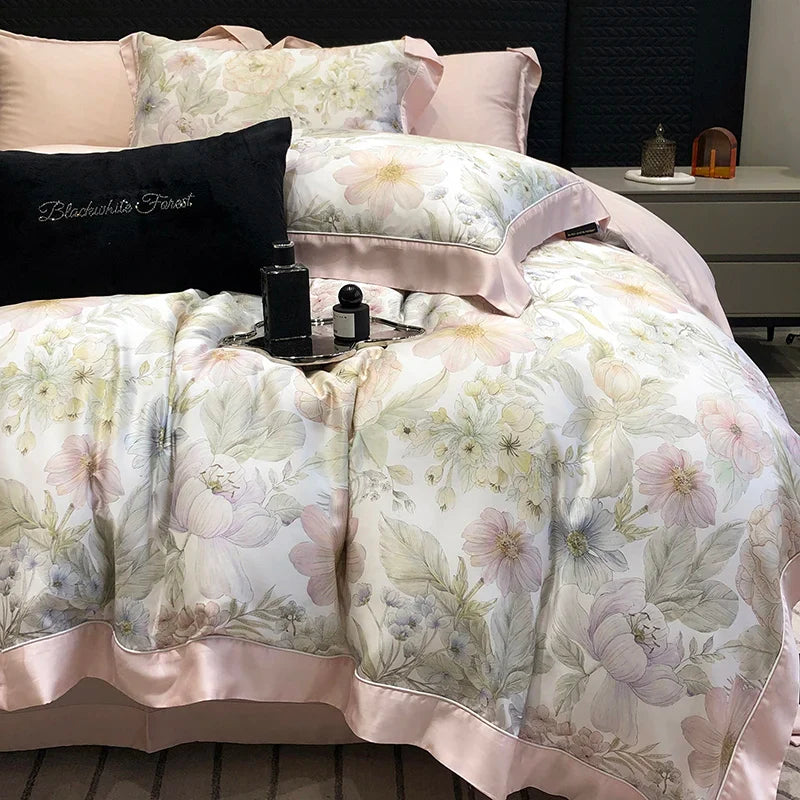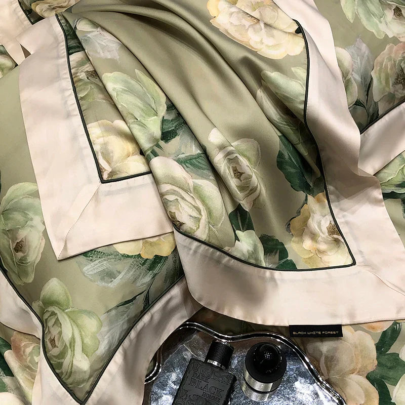 Afralia™ Rose Flowers Bamboo Fiber Bedding Set: Soft & Silky, 1 Duvet Cover, 2 Pillowcases, 1 Flat Sheet