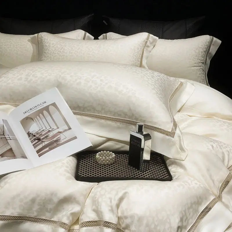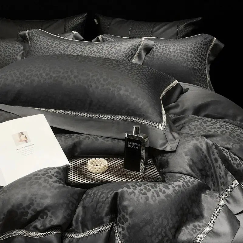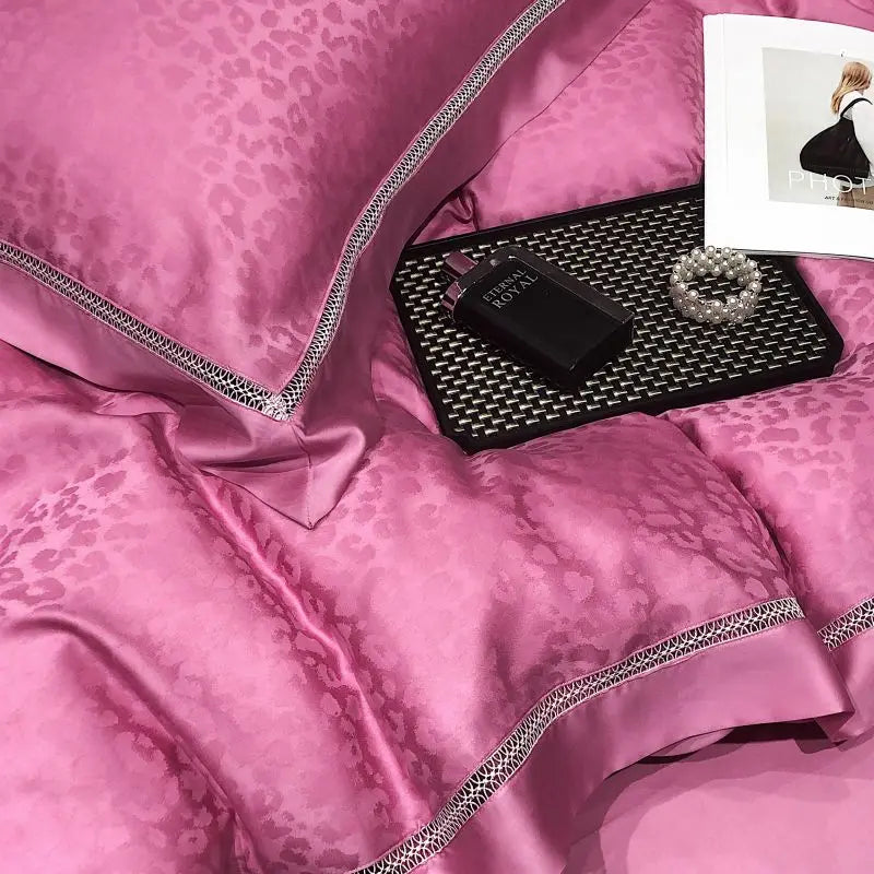 Afralia™ Rose Red Leopard Print Luxury Bedding Set with Eucalyptus Fiber - 4-Piece Set