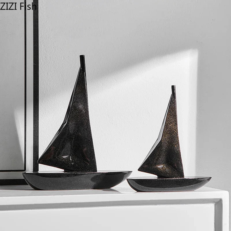 Afralia™ Sailboat Resin Sculpture Desk Decoration Modern Artwork Ornaments Glass Crafts