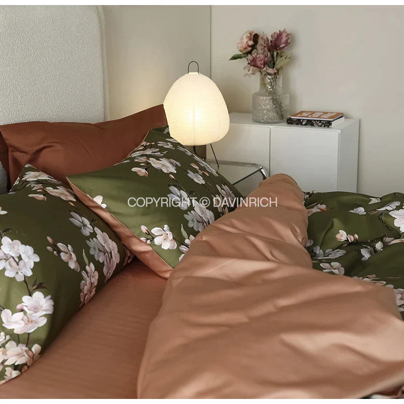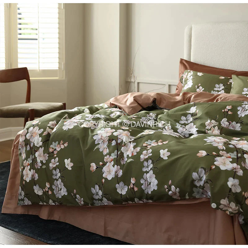 Afralia™ Sakura Floral Print Cotton Queen Duvet Cover Set