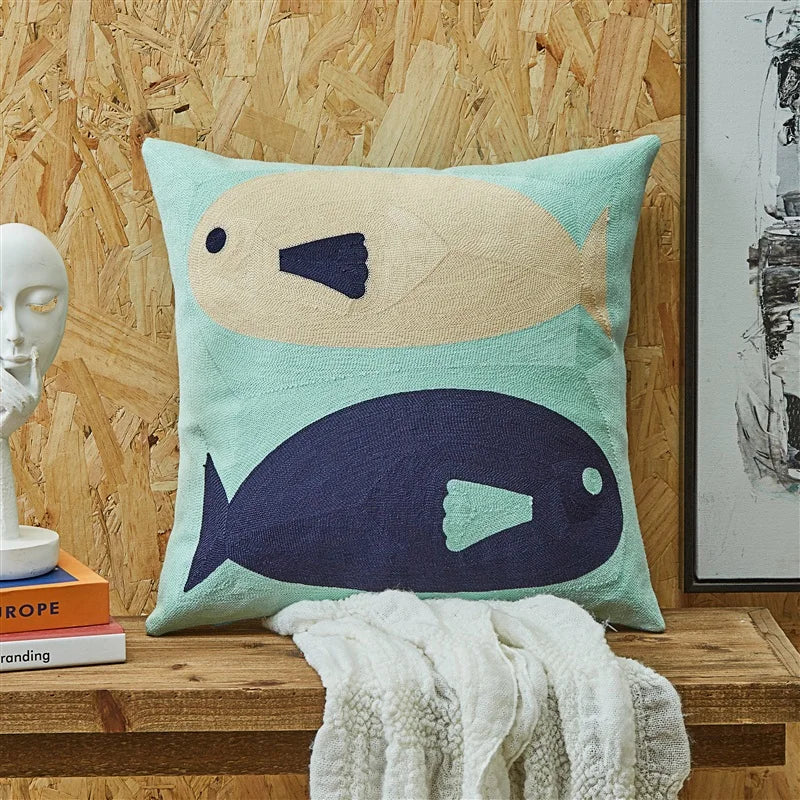 Afralia™ Sea Starfish Coastal Cushion Cover 45x45cm in Navy Blue and Yellow