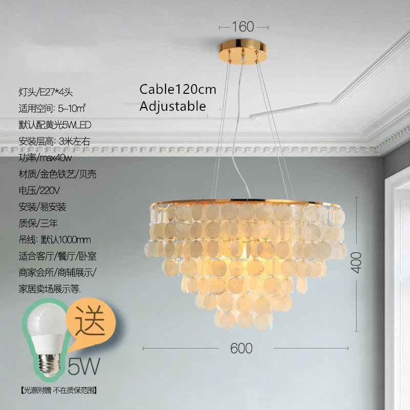 Afralia™ Shell Chandelier: Minimalist Nature Design for Bedroom, Living Room, Kitchen - Chrome Art Decor