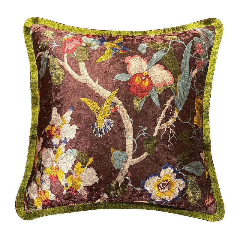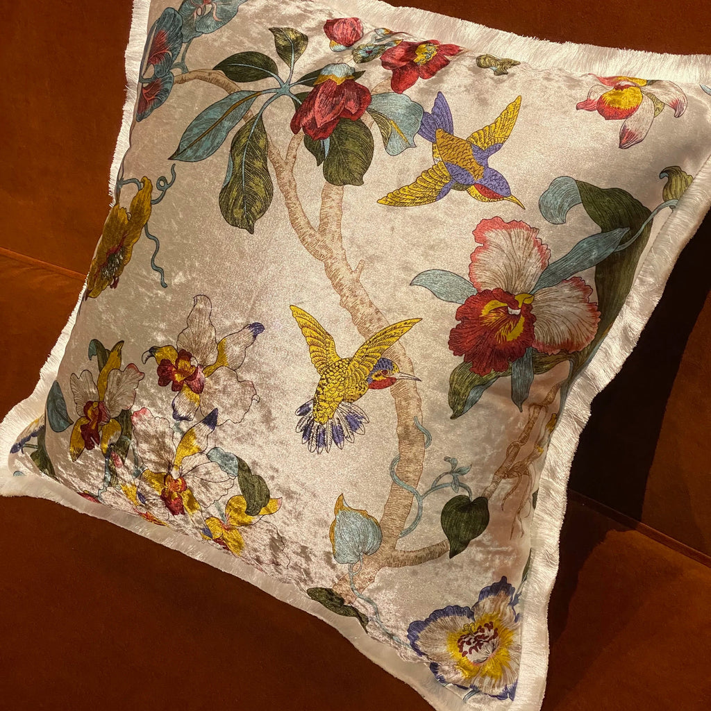 Afralia™ Shiny Velvet Floral Bird Print Vintage Cushion Cover