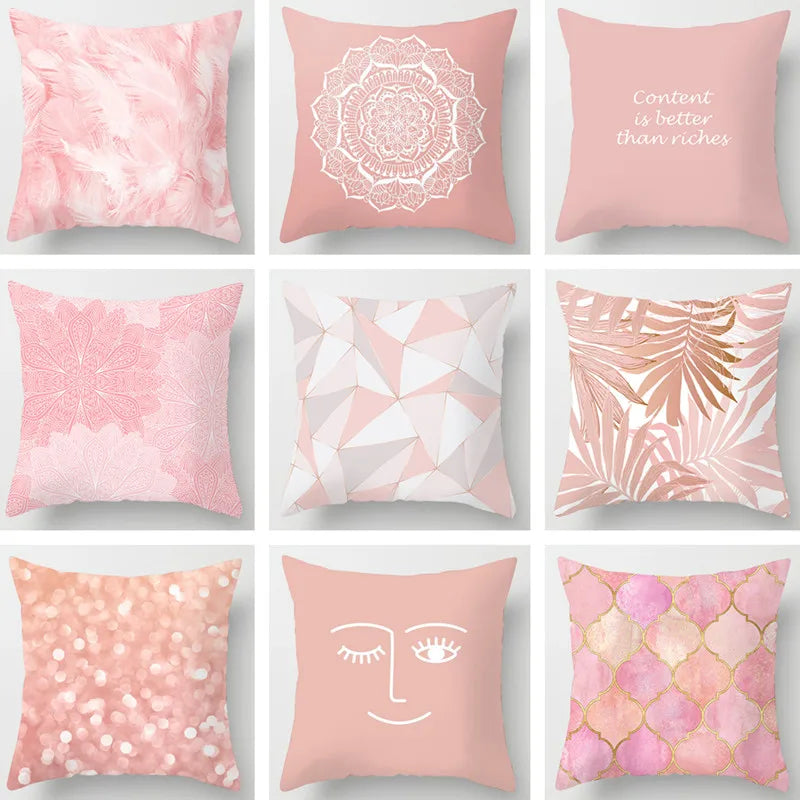 Afralia™ Short Plush Pink Feather Pillowcase 45*45cm