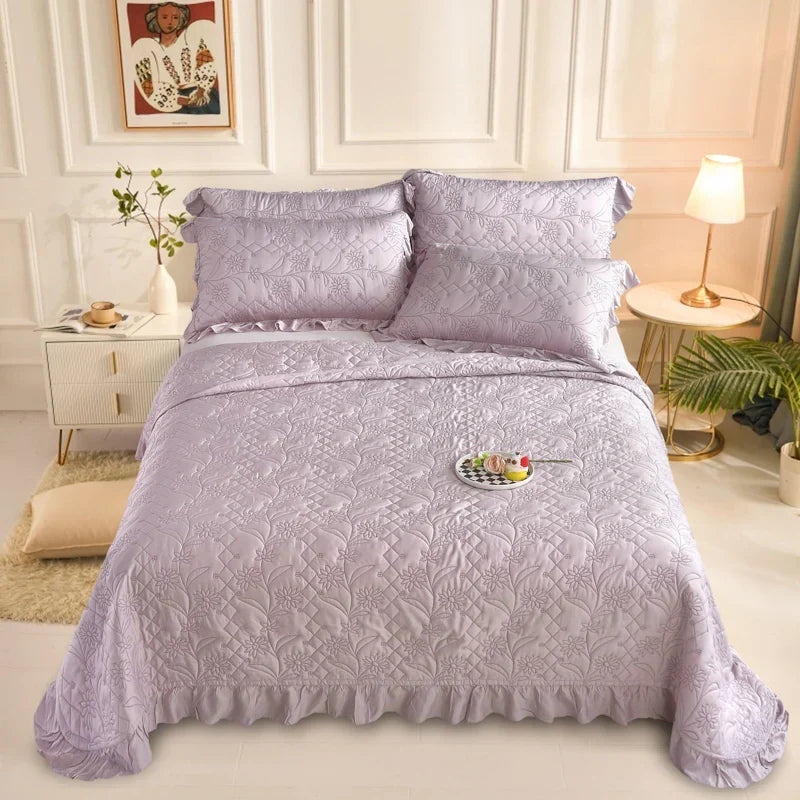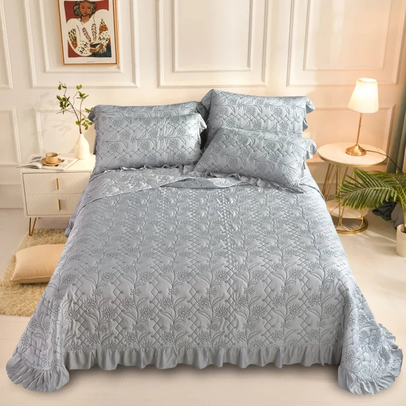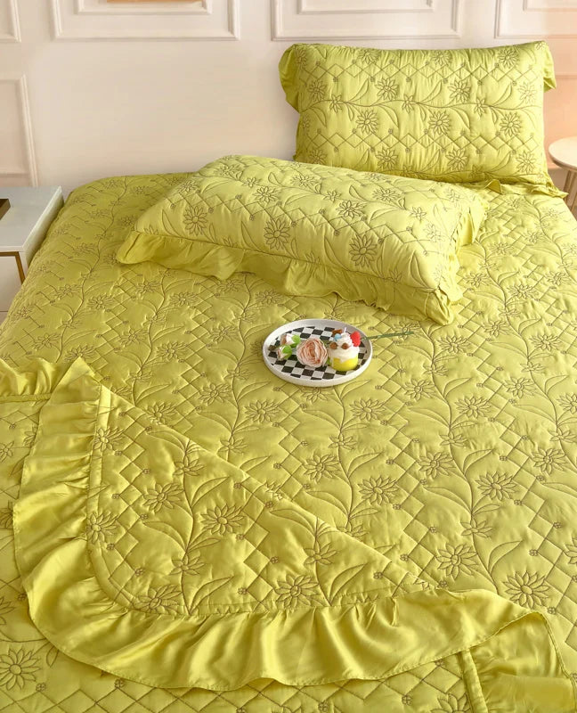Indulge in the luxurious comfort of Afralia™ Silky Lyocell Eucalyptus Fiber Quilted Bedspread with Ruffles. Crafted with the finest materials, this bedspread is a perfect blend of style and functionality.