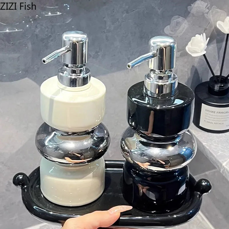 Afralia™ Silver Ceramic Soap Dispenser Pump Bathroom Lotion Bottle Hotel Home Accessory