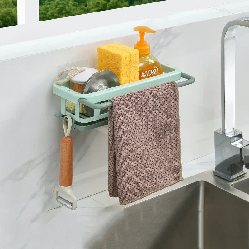 Afralia™ Sink Shelf Rack with Hooks for Kitchen and Bathroom Storage