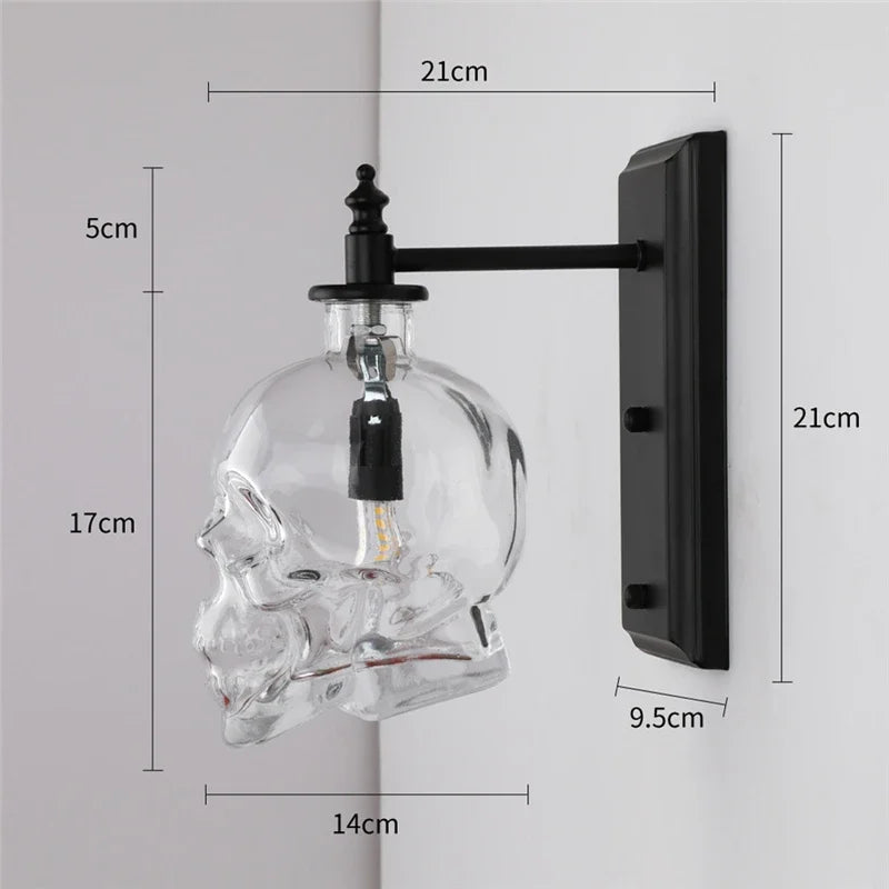 Afralia™ Skull Glass Wall Lamp Modern Industrial Vintage LED Sconce Light Fixtures