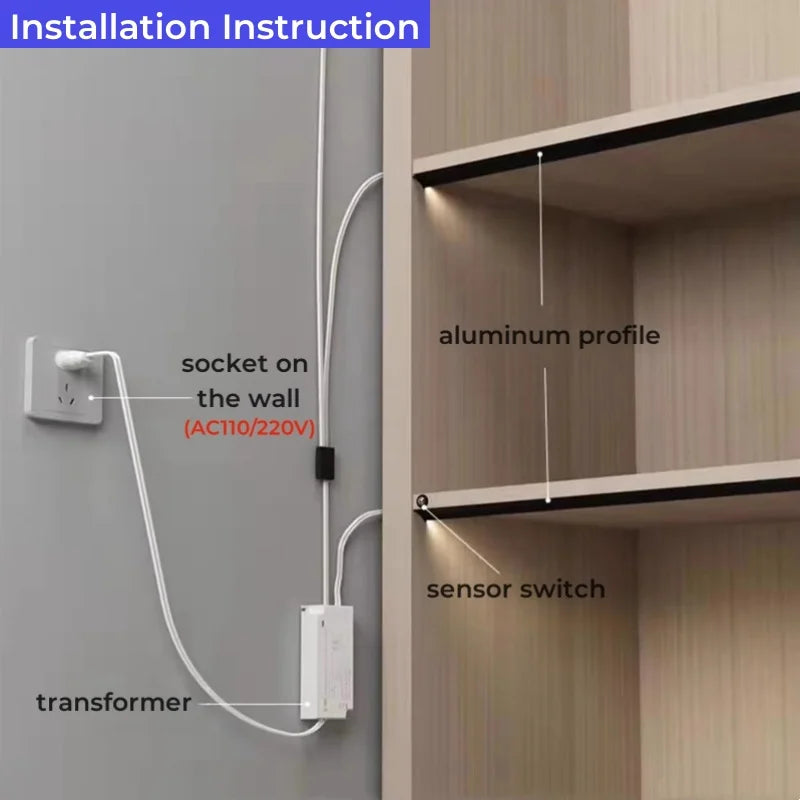 Afralia™ Slim LED Cabinet Shelf Aluminum Profile with Hidden Channel & Diffuser