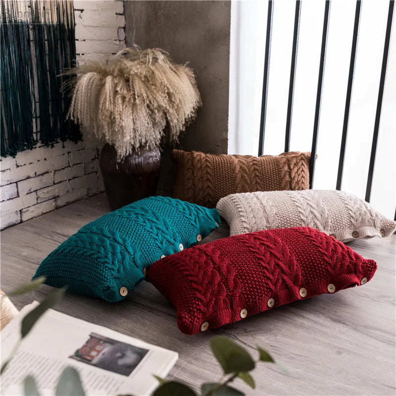 Afralia™ Solid Red Peacock Knit Cushion Case 35x65cm for Sofa Bed.