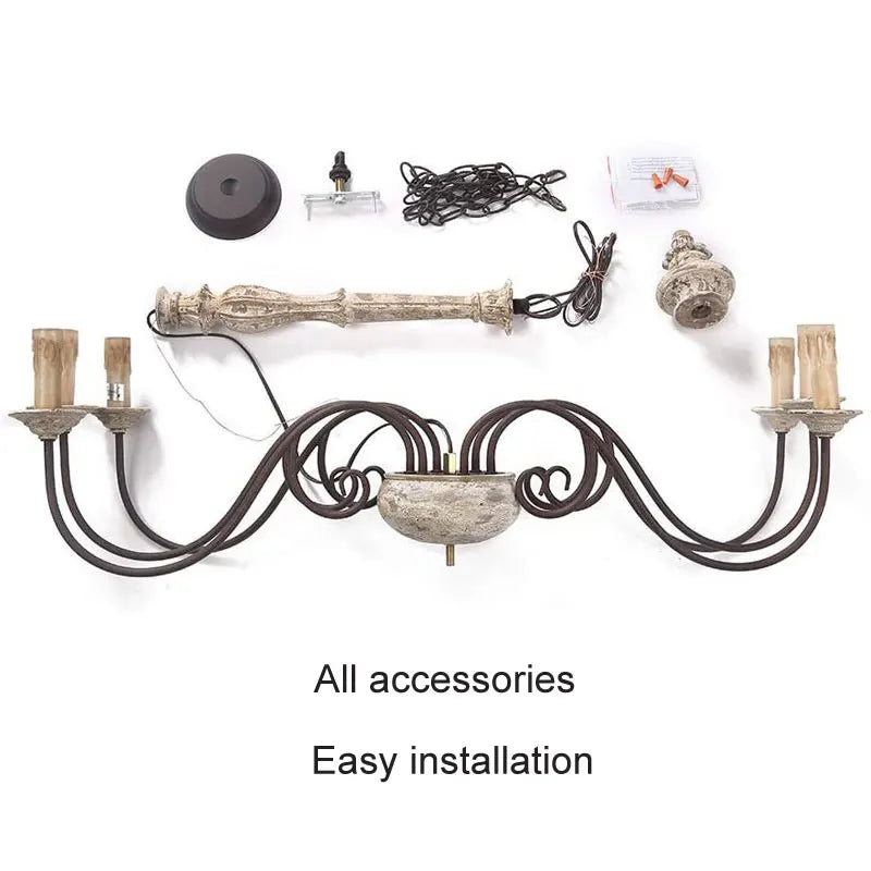 Afralia™ Solid Wood Chandelier Vintage French Style Pendant Lamp