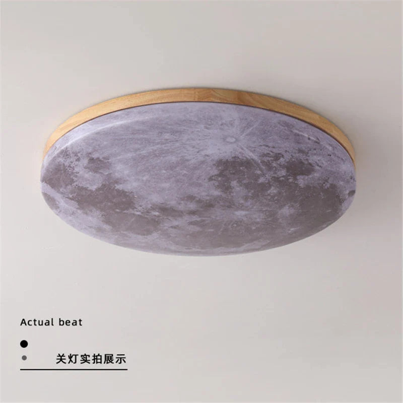 Experience the warm glow of this exquisite ceiling lamp, featuring a unique moon-inspired design that adds a touch of sophistication to your home decor. The body of the lamp is made of high-quality ironware and acrylic, complemented by a wood finish that exudes charm and style.