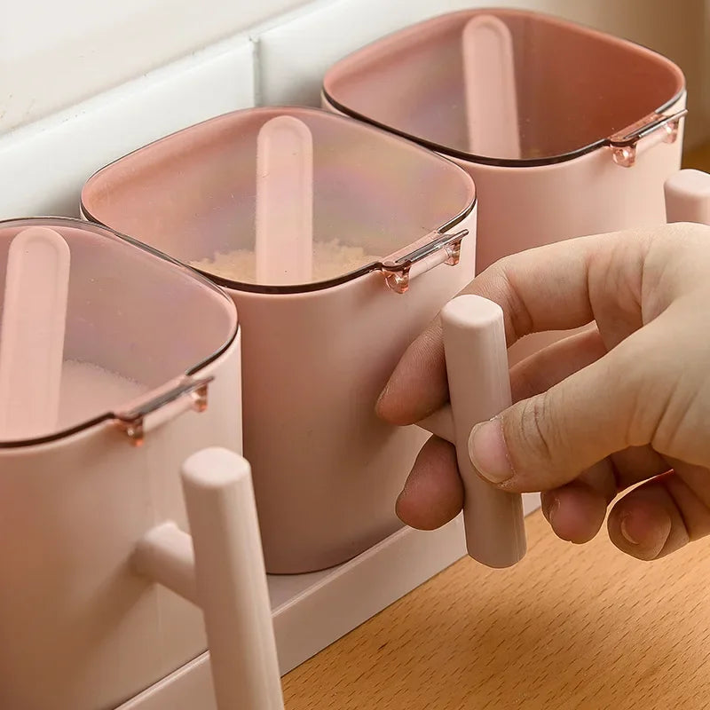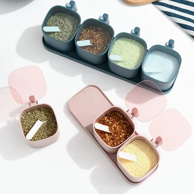 Afralia™ Spice Box Set Salt Pepper Shaker Seasoning Organizer with Spoons