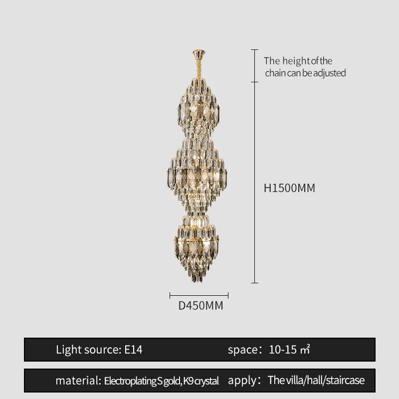 Introducing our stunning Afralia™ Spiral Staircase Crystal Chandelier, designed to bring elegance and sophistication to your space. Crafted with the finest materials, this chandelier is a perfect addition to elevate the ambiance of your living room, hotel lobby, or any other upscale setting.